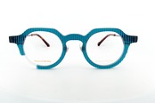 フロントはやや太めのリムのアセテート製でボストンの天辺をまっすぐにカットしたクラウンパントタイプになっています。