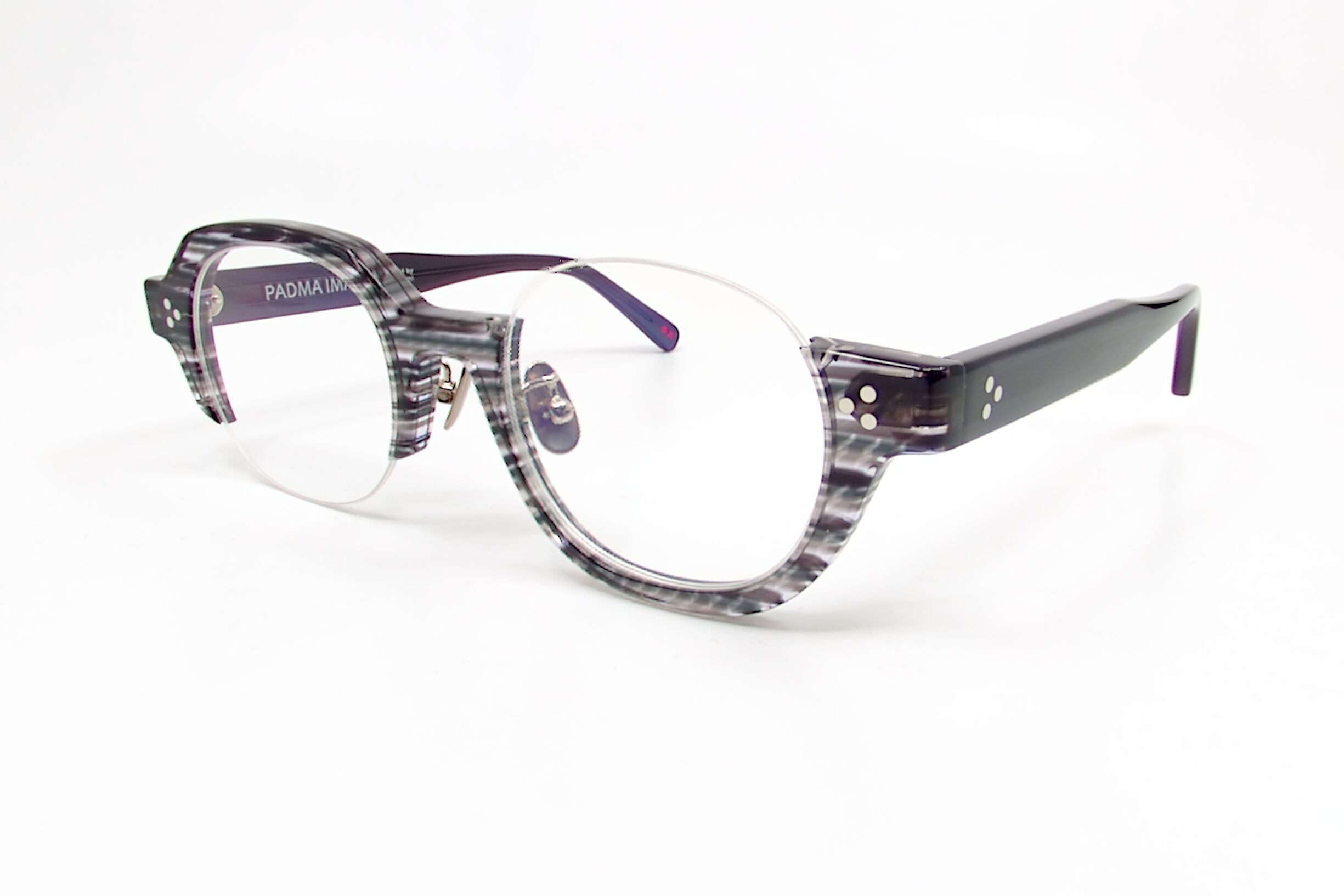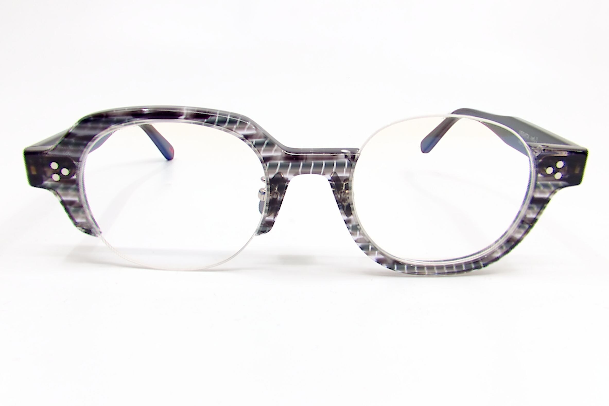 2023年に登場した第4世代"Ue-Shita"ではテンプルが細いチタンタイプでしたが本作ではアセテート製になり智部分とテンプルの付け根に三点鋲が付きクラシックっぽさのある印象に仕上げれています。