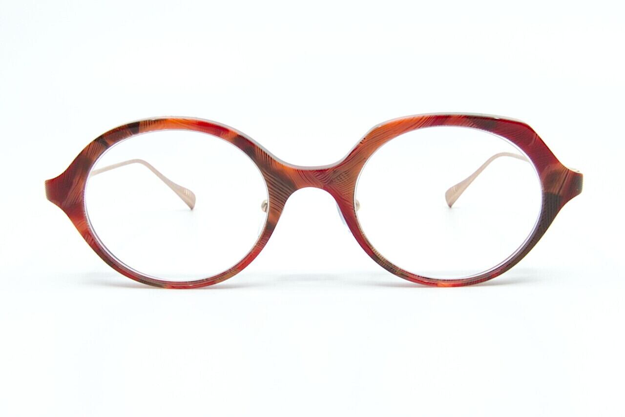 ラウンドに近いボストンの玉型に名前の通り丸とやや角の立ったリムとPADMA IMAGEお馴染みのアシンメトリーなデザインで表現されています。