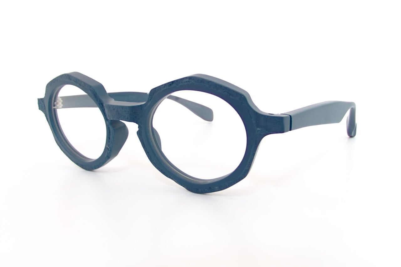 大きめのボストンデザインの玉型の周りグルっと多角型リムで囲んでいます。