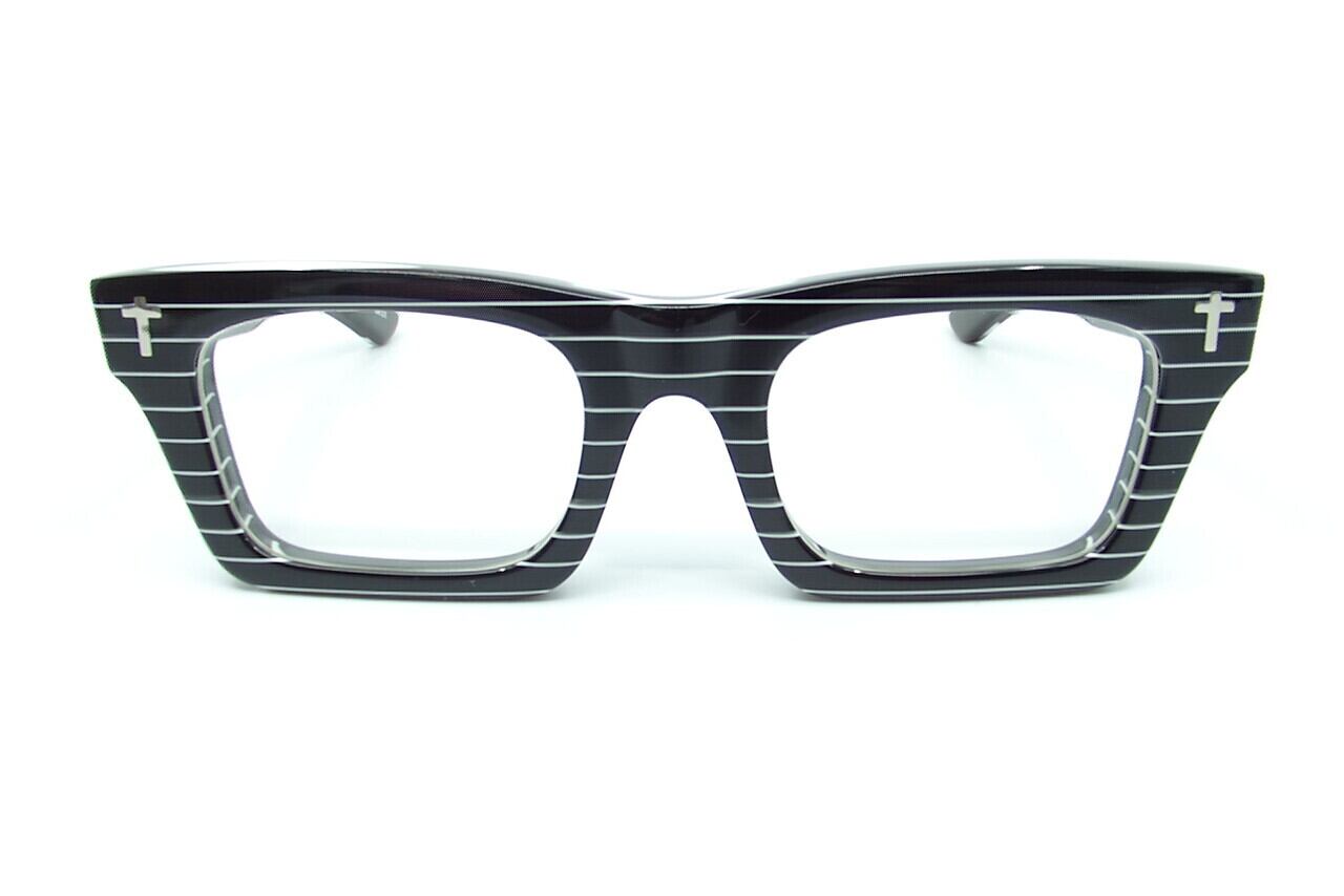 8mm厚の生地にゴツゴツっとした角のあるウエリントンデザインとエフェクターらしいモデル。 ブラックもインパクトがありますが、このブラック、ホワイト、クリアのストライプ柄はそれ以上のといったところでしょうか。