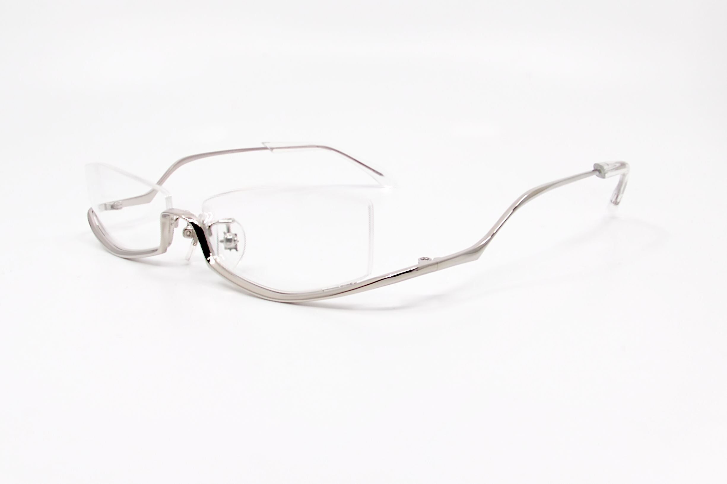 カラー1010nは光沢のあるシルバーのメタルパーツにクリアアセテート生地を使用したモダンの組み合わせです。