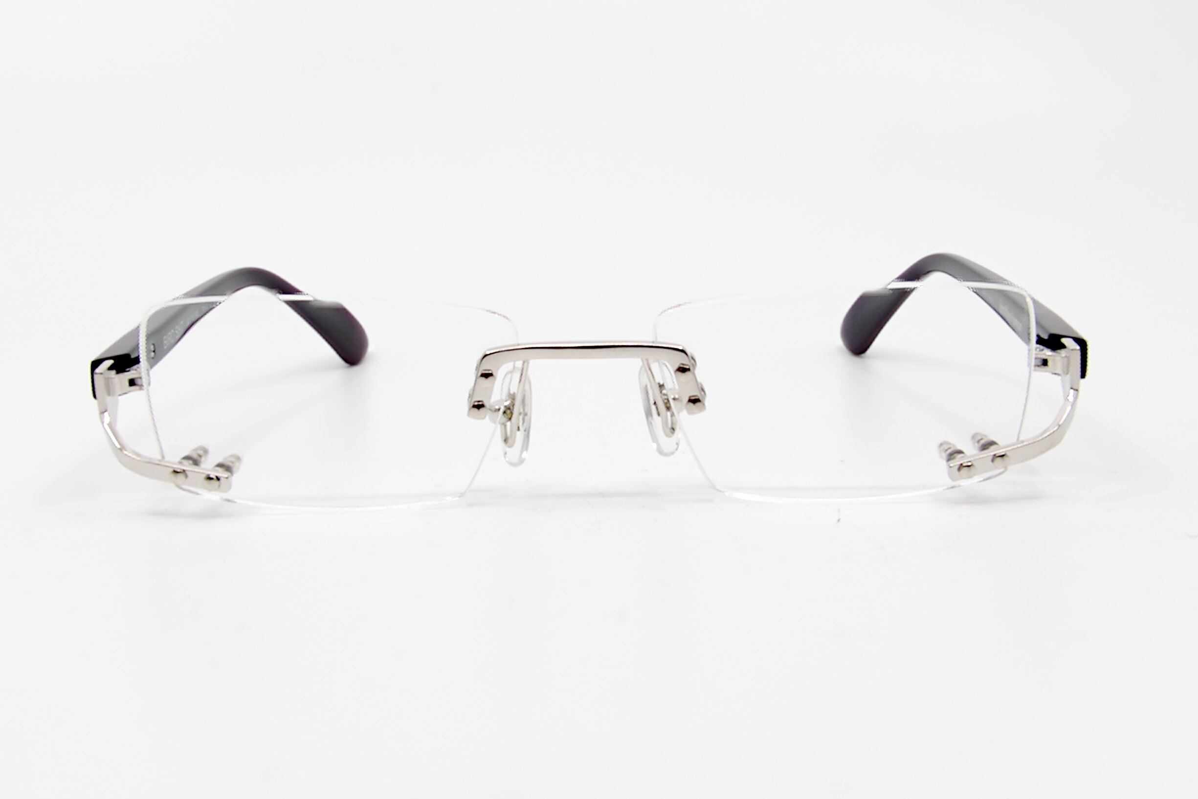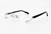 レンズに直接穴をあけて固定するリムレス(フチなし)モデル。