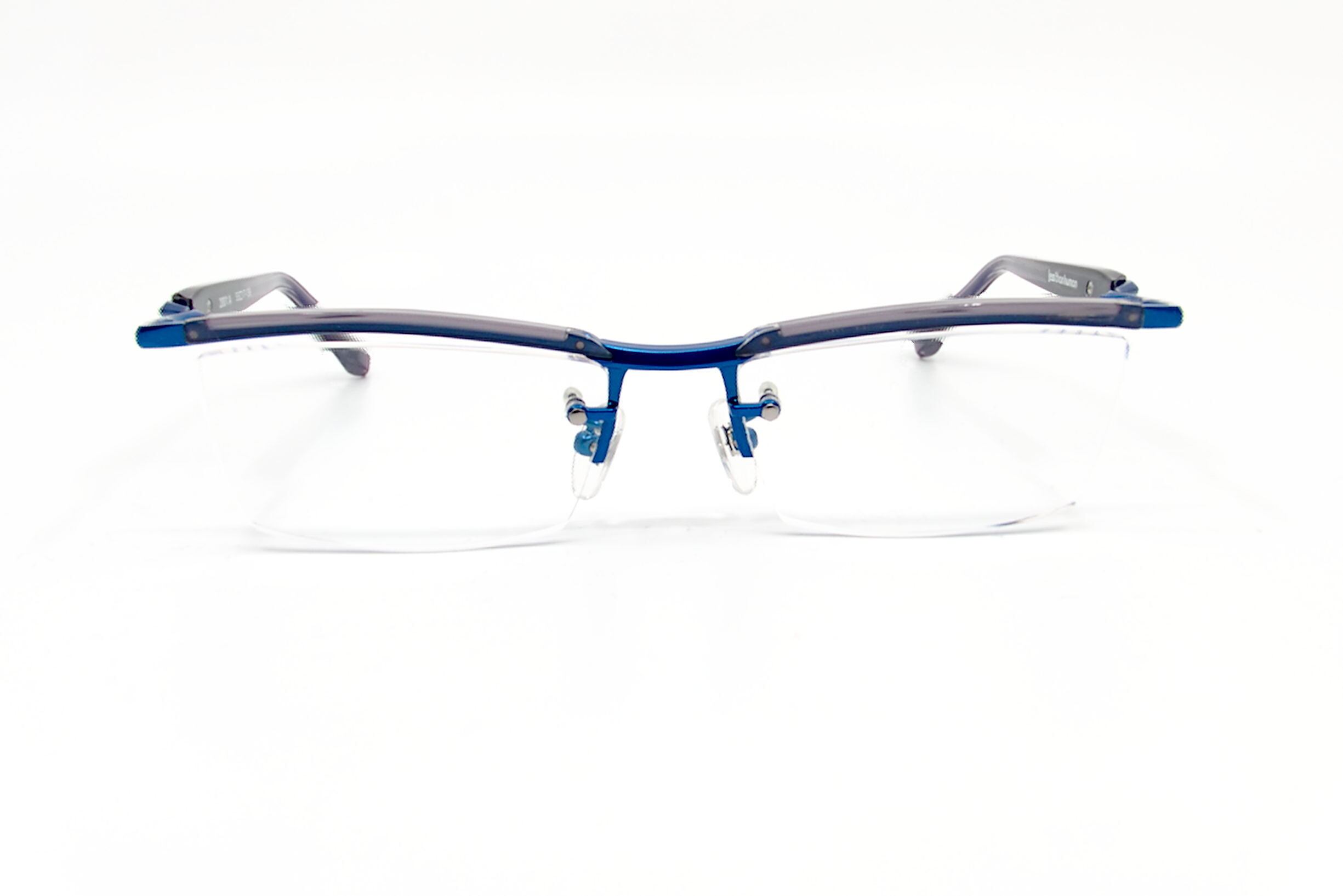 カラー8080はメタリックブルーのメタルパーツにクリアグレーのアセテート生地の組み合わせです。