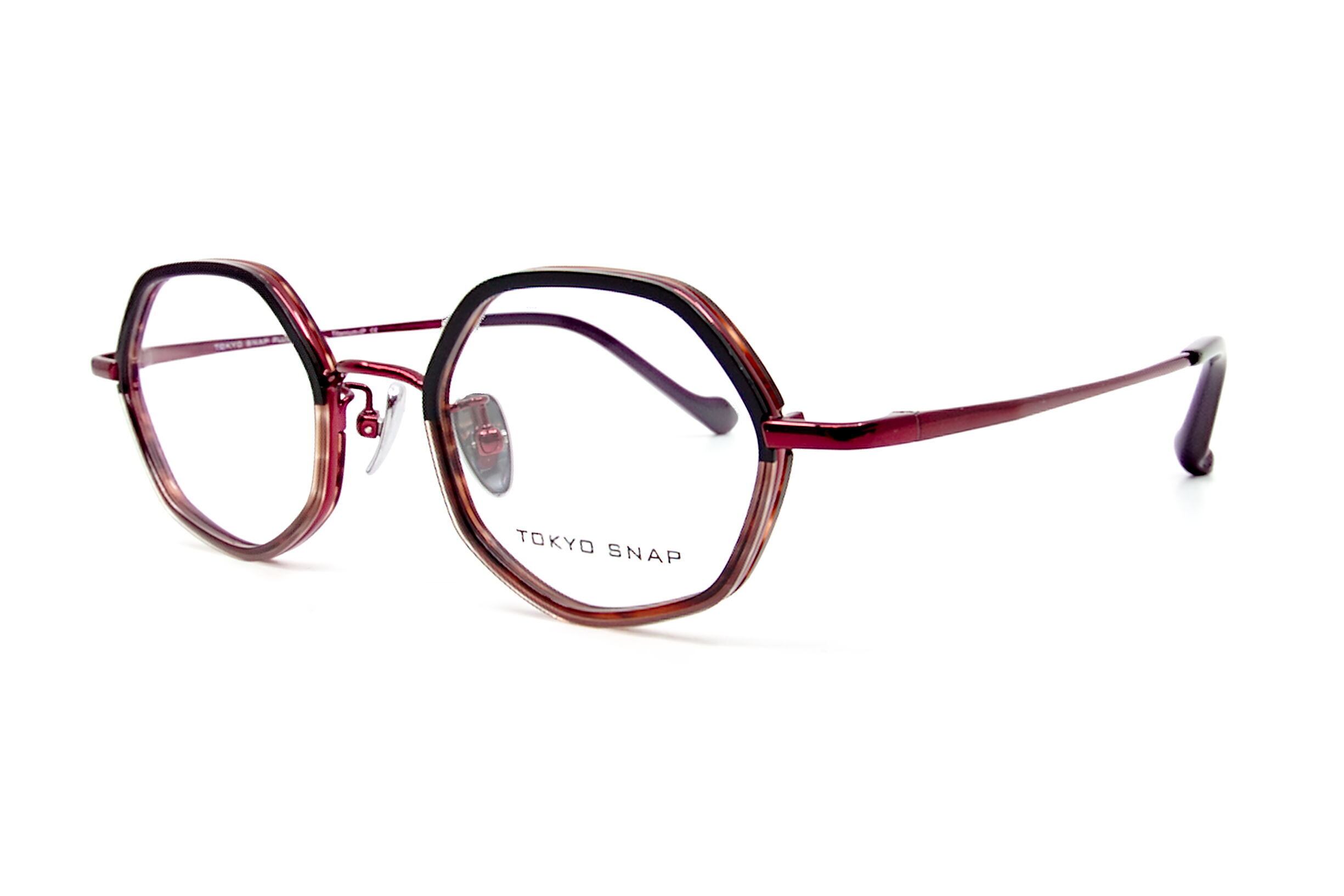 2021年の新色col.06は光沢のあるワインレッドのチタンパーツととブラック、クリアブラウンのツートンのアセテート生地の組み合わせになっています。