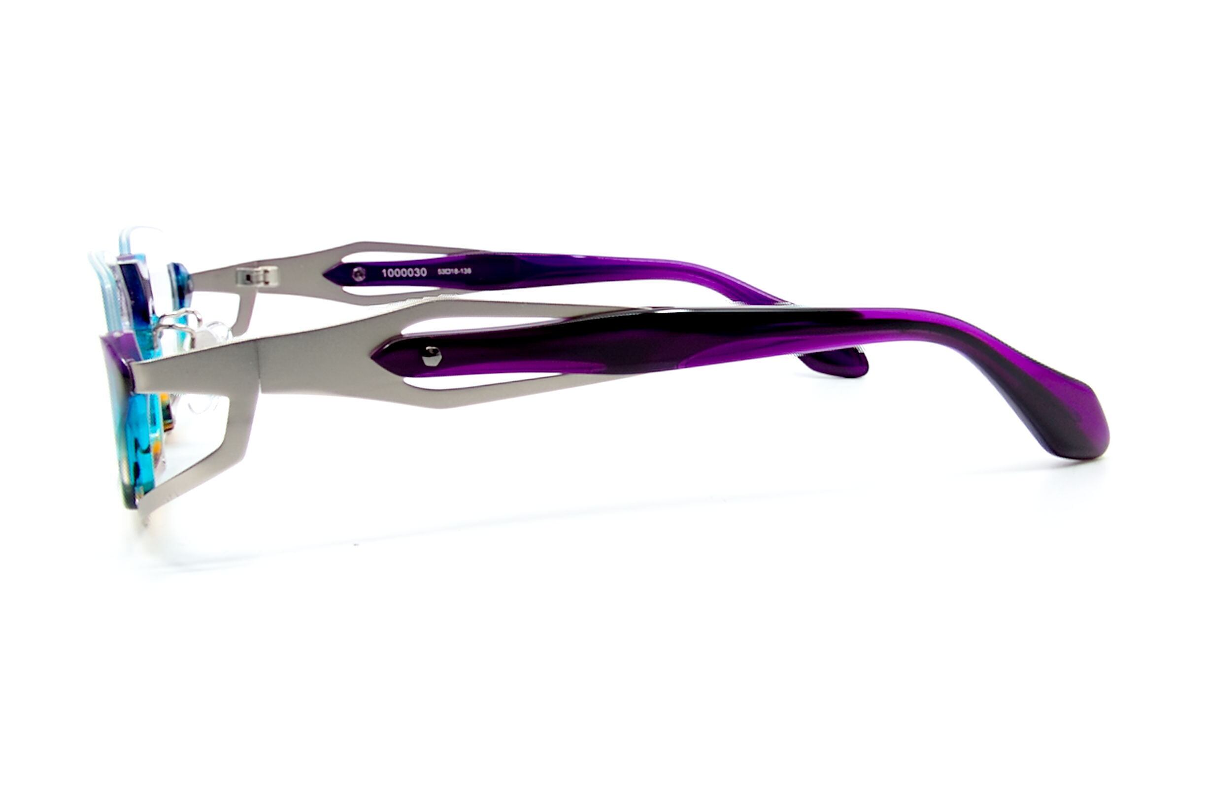 フロントのアセテート生地はクリアパープル、クリアブルー、クリアイエローを混ぜた柄生地を使用しています。