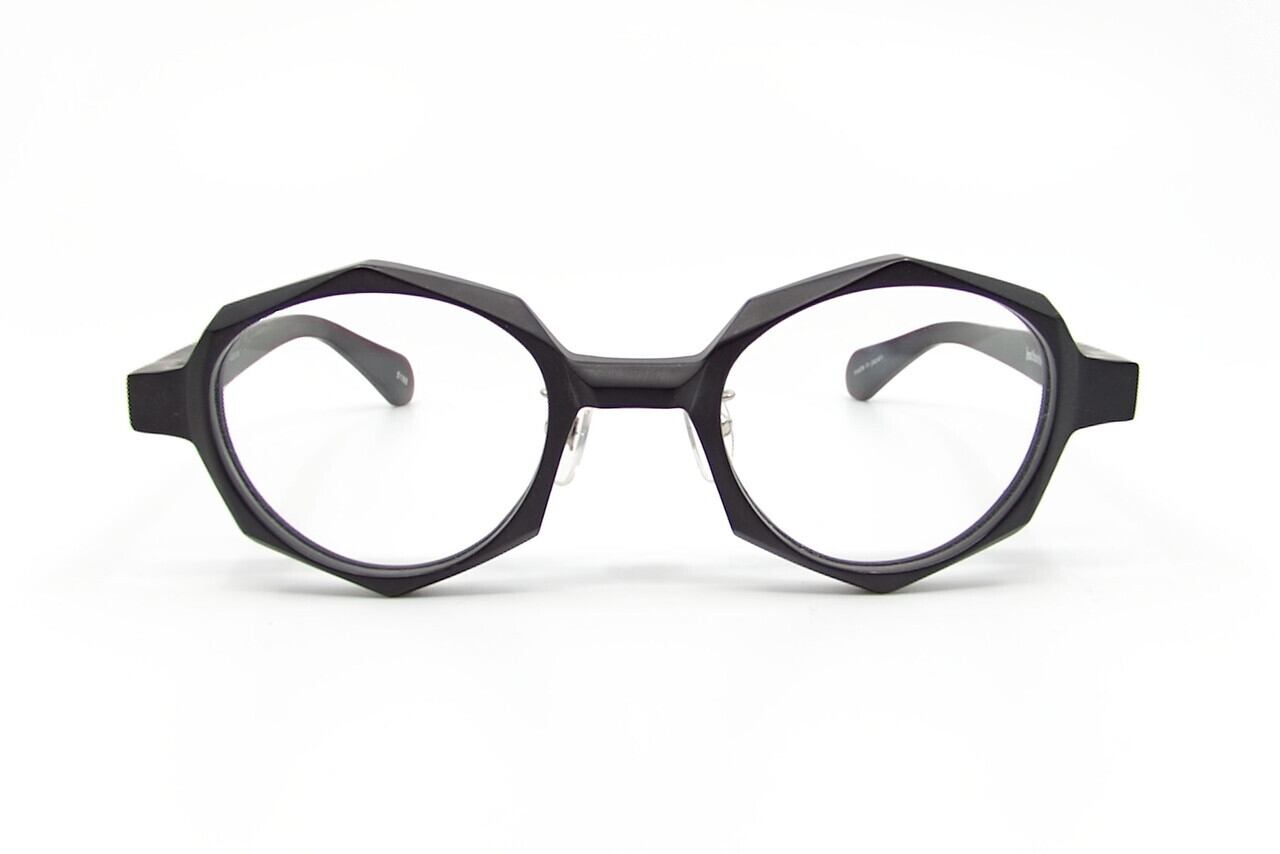 ややつり目に設計されたボストンの玉型に対して角の立った多角形デザインのリムとシャープなテイストも含んだ1枚になっています。