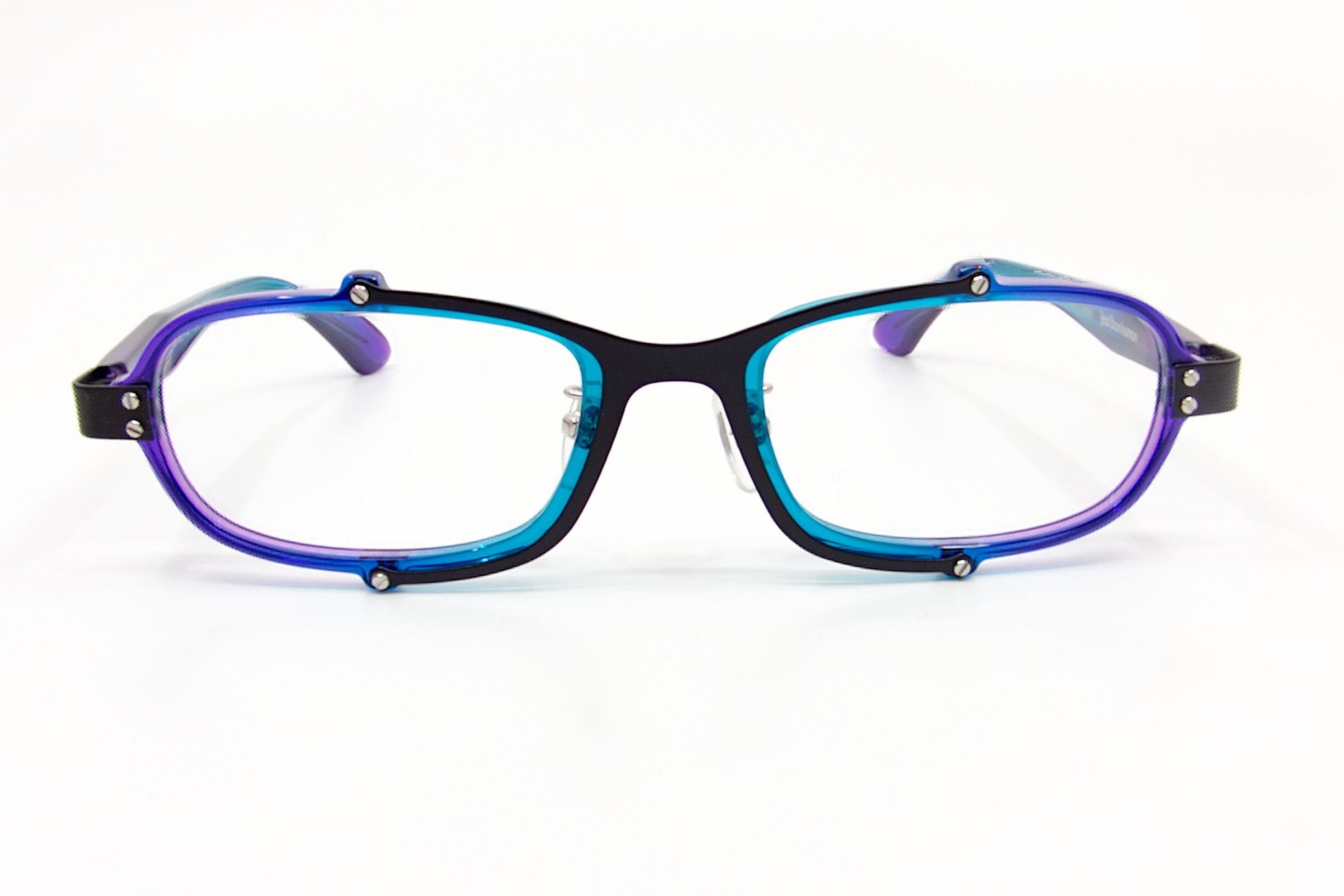 カラー8080はブラックのメタルバーツと明るいクリアブルー、クリアパープルのツートン生地の組み合わせになっています。