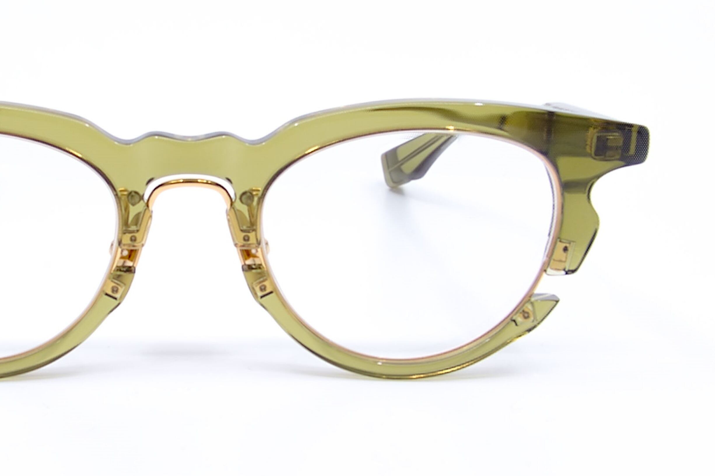 クラシック王道のキーホールデザインのブリッジにメタルブリッジがついたツーブリッジデザインやセルを上下に分離させるといった「生地の中のメタルパーツも、魅せるデザインの一つとして存在感は持たせながらもすっきりとした構造」を採用しています。
