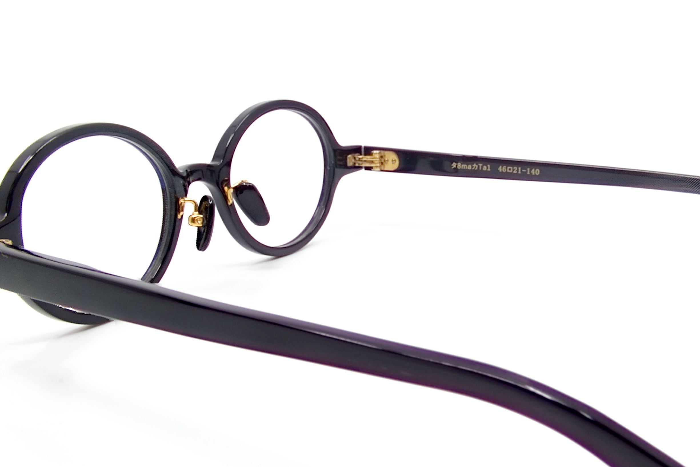 程よい厚みのある昭和テイストな丸眼鏡と超クラシックなデザインになっています。