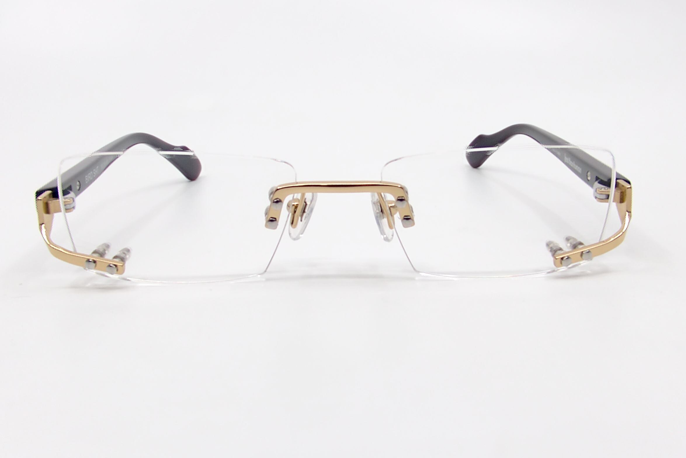 ブリッジはレンズの上方、対して智は下方にパーツを取り付ける事でリムレスでありながらどことなくアンダーリムっぽく見せるという独特な個性を出しています。