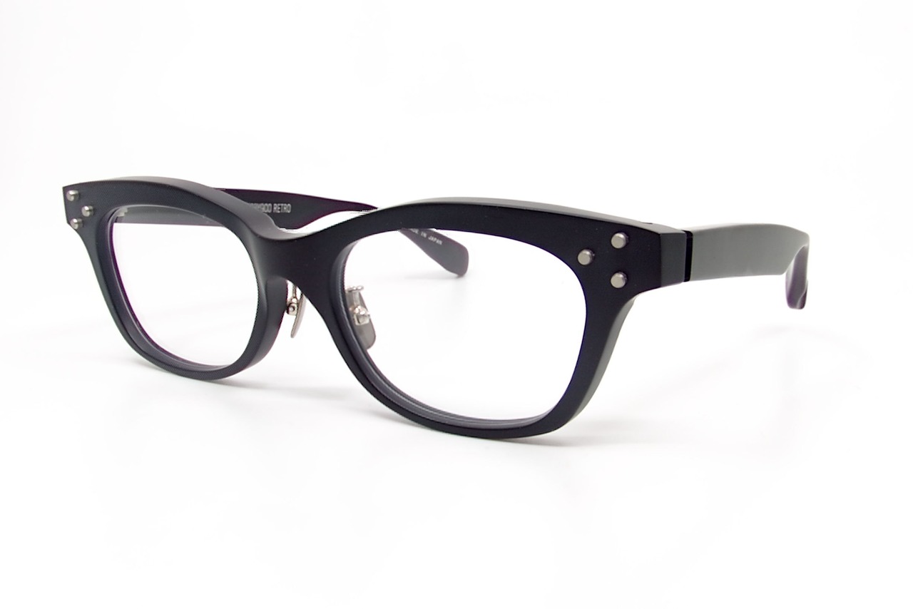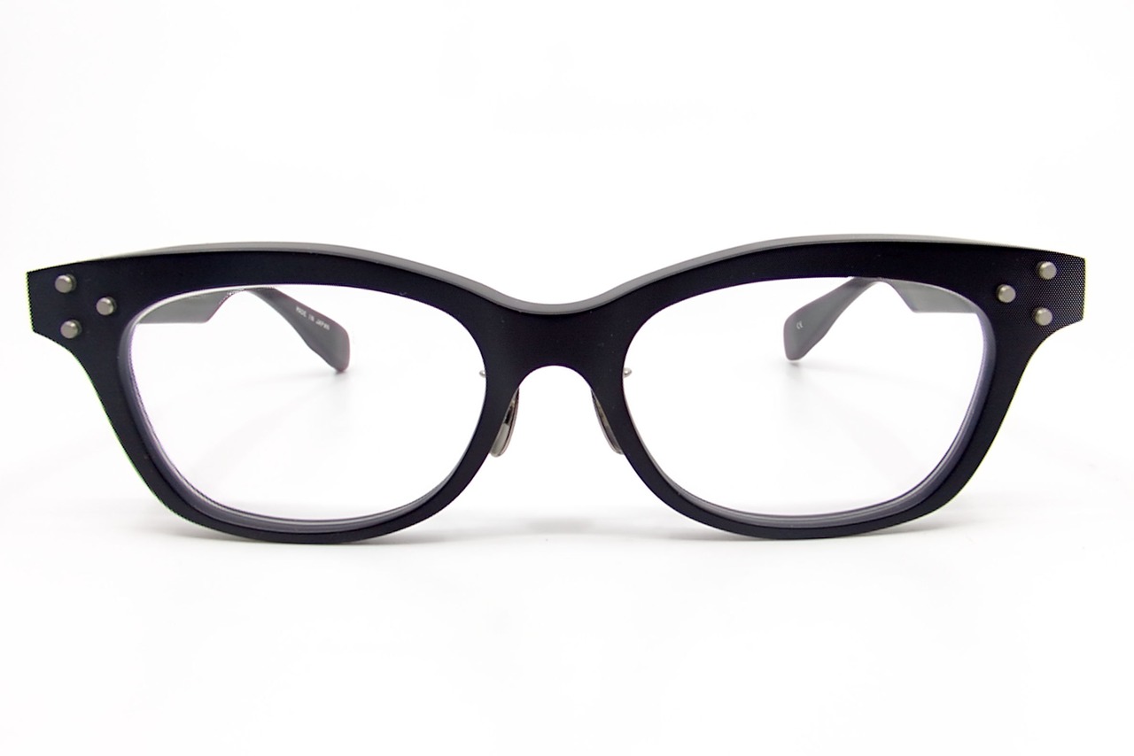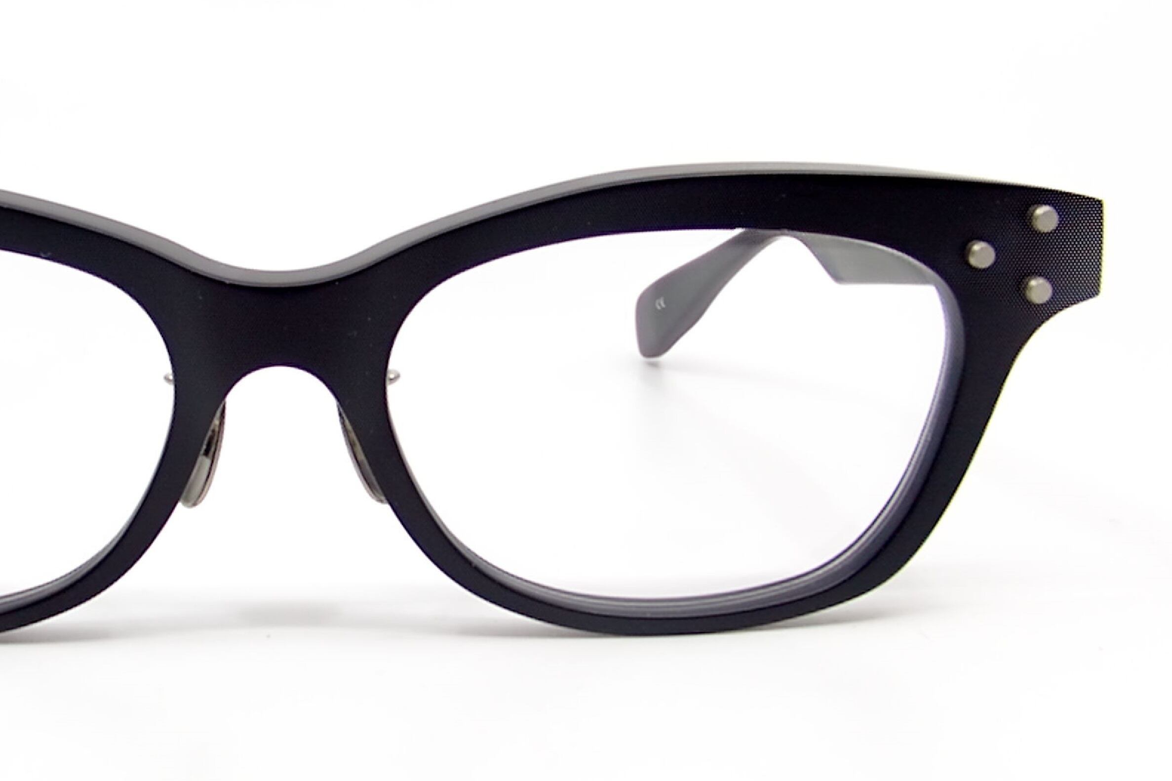 カラーcol.001Mは艶消しのブラックのセル生地と艶消しシルバーのメタルパーツの組み合わせ。