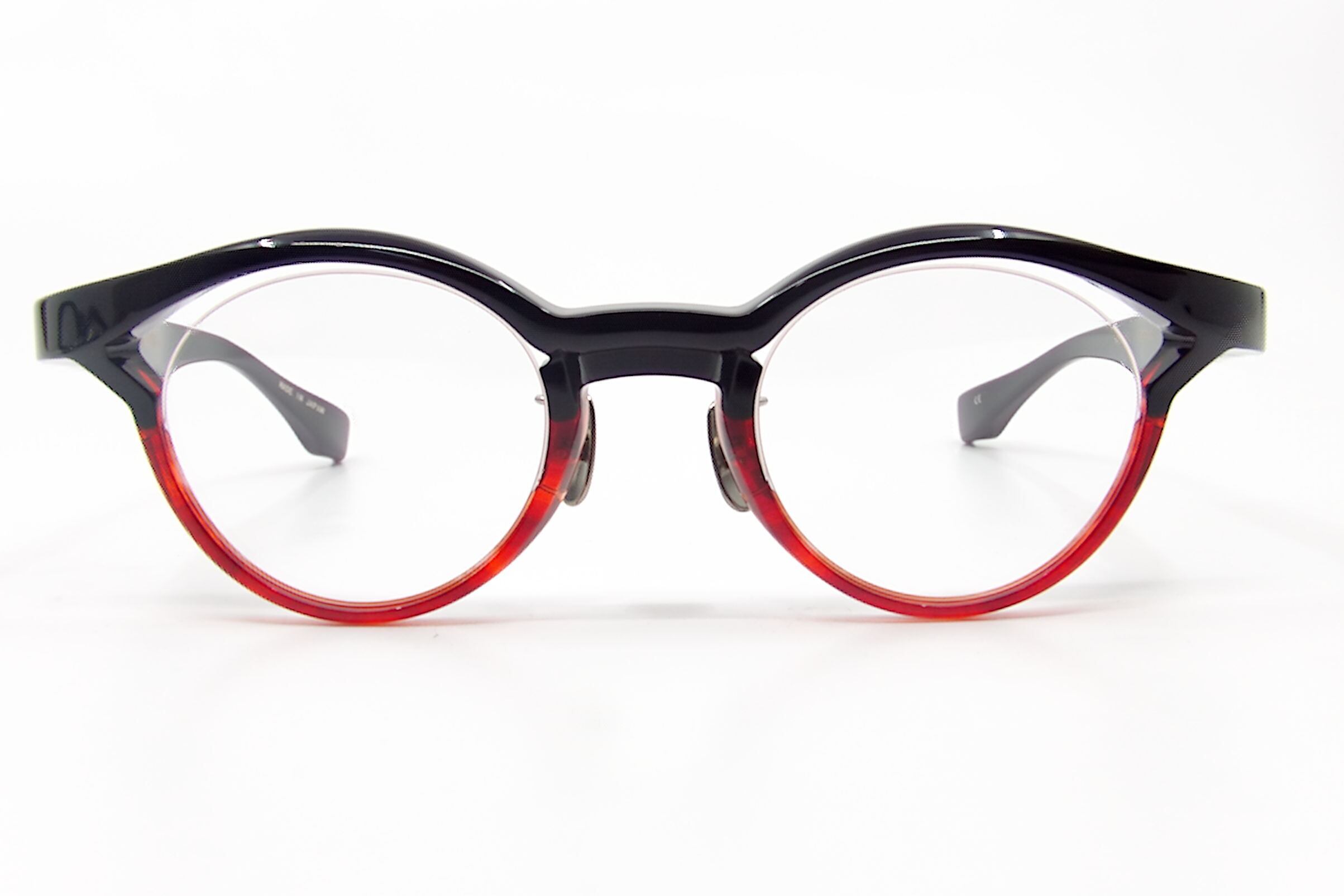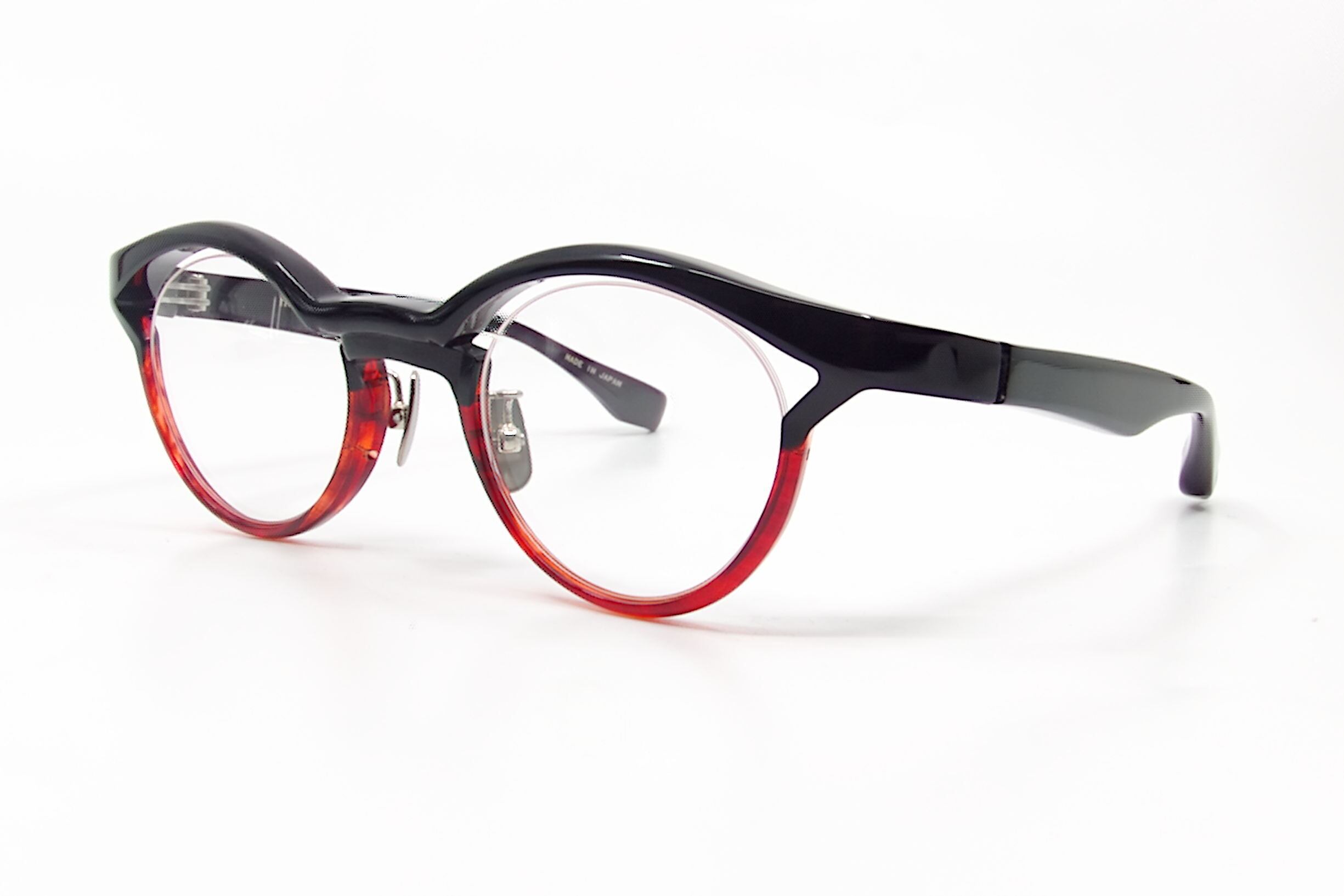 col.052はブラック、クリアレッドのツートンのフロントにブラックのテンプルの組み合わせになっています。