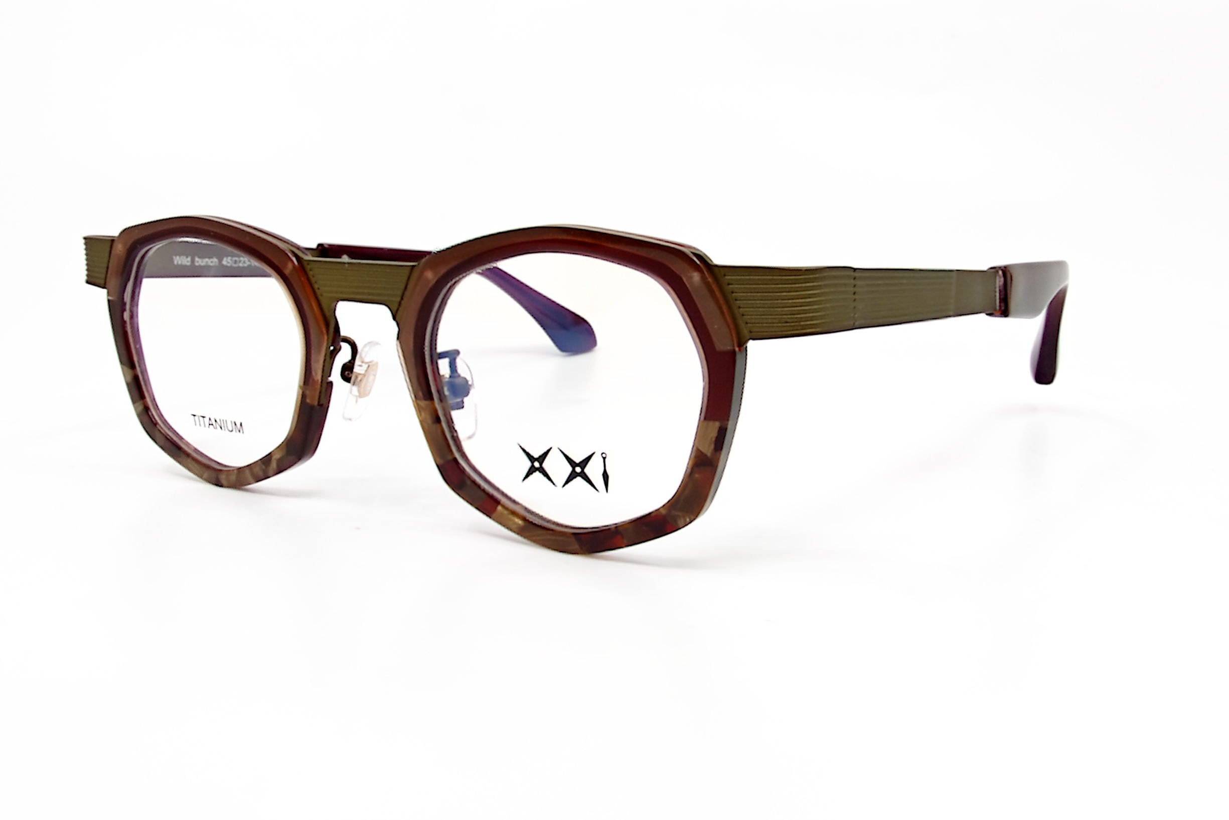 カラー072 specialは艶消しのカーキのメタルパーツにブラウンとブラウン柄のツートンのアセテート生地の組み合わせです。