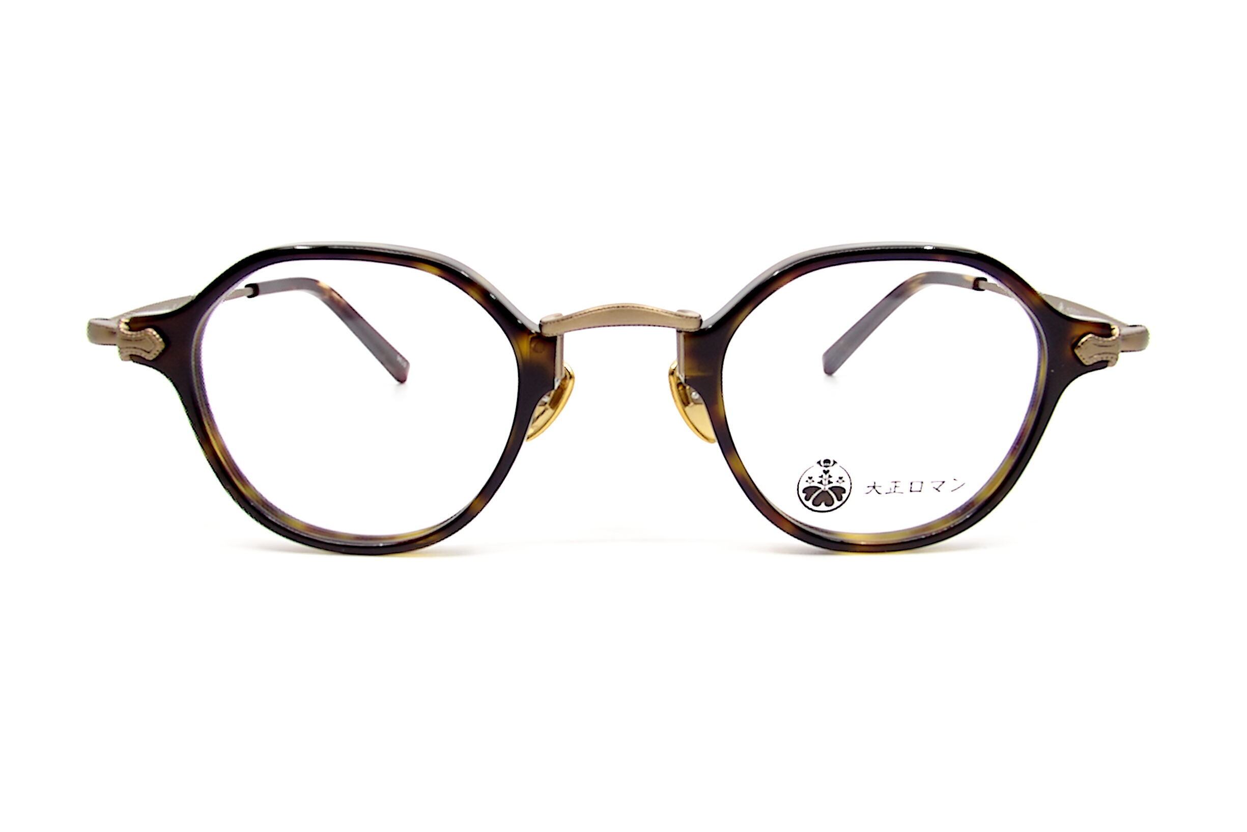 カラー9610はべっ甲柄のアセテート生地とアンティークゴールドのチタンパーツの組み合わせになっています。